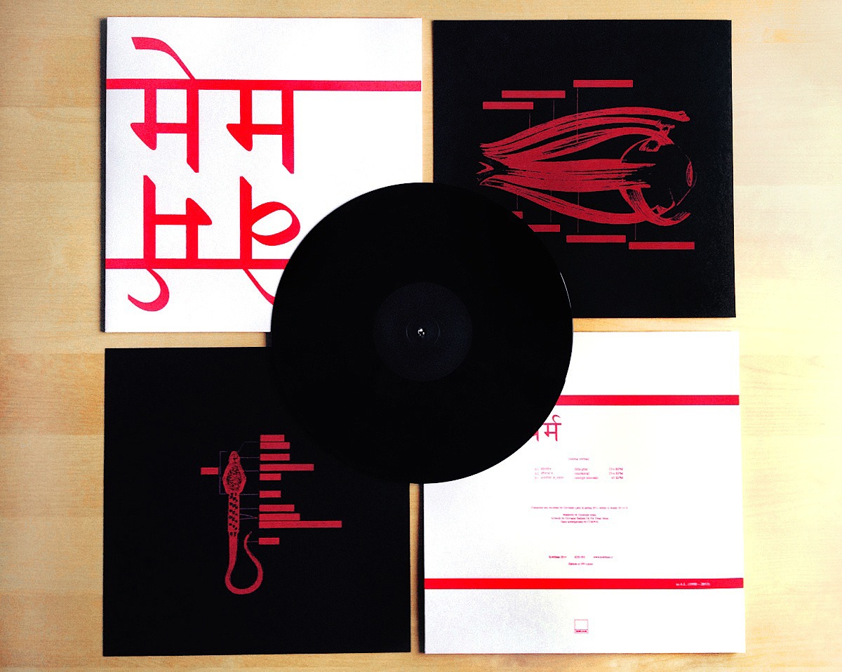 Recorded two years ago but re-worked more recently when trying to devise a new live-set this past winter, the work has taken on added significance for Lami, transforming and translating his own personal experiences over this time in tandem with the evolution of the material. As you can see from the videos below, the resulting live manifestation has been successful, but the conceptual rigor of the physical release is worth special attention. The title itself is gibberish, a grammelot with no particular meaning. Popularized in the 1960’s by the anarchist (and Nobel Prize winning) playwright Dario Fo, a grammelot is a kind of satirical language used in theater relying on puns and wordplay. Though the album and song titles may at first appear to have some hidden significance, they aren’t in fact actual words. (Except for the title of the first track, “kīta gīta,” which means bug song, but whose internal rhyme is consistent with the kinds of word play associated with a grammelot.) One might think that Lami is joking around, or otherwise making a statement about the impossibility of communication or the frustration of true communion. I prefer to imagine that Mema Verma is a call to pay attention to the beauty of the sound itself rather than getting distracted by an attempt to decode some hidden message.