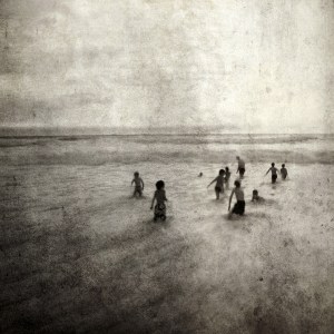 The phrase “Go big or go home” comes to mind, as the French band reaches high, then achieves its goals. The largesse of these tracks makes the listener think of grand ideas: life and death, giving up and going on, and by extension of Christine Drouillard’s cover, playfulness and peacefulness beside the break. These children (along with one adult in the background) view waves as something to be enjoyed rather than endured, a life lesson that may well carry them through. Will they one day stand on that cliff, questioning whether life is worth the living? And if so, will they remember these days?