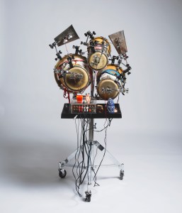Rozas’ three-part Myth and Prosthesis series utilizes technology, software, and robotics to explore the creation of rhythm from new perspectives. Myth and Prosthesis began with Do robots have an Ethnicity?, which considers who and for whom digital technologies tend to be made. Under these conditions,he asks what role indigenous and non-Western cosmologies have within these new technological systems. He designed a robot, which he coded and built, to perform improvised rhythms on Batá drums, used in Santeria/Yoruba, considering the drum, and its rhythms, as a form of technology in itself, a technology which conceives of the relationship between the mind and body in very different terms than the Cartesian model which has long dominated Western thought.