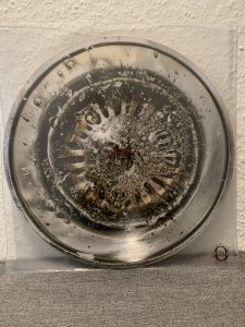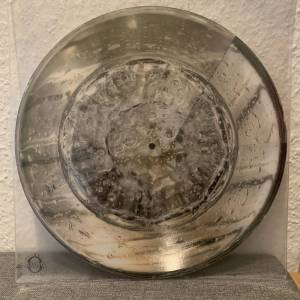 The vinyl edition, from Taping Desk-O Phon mania, is a wonder. As the disc is round, the viewer seems to be looking right into the glass from both top and bottom. While there’s great beauty in paint-splattered vinyl, it’s nice to have something different; and this affects one’s appreciation of the music as well. Fortunately the music, which begins in ambient style but creeps pleasantly toward drone, is similarly engaging: one might even say sparkling. Ironically, the vinyl was inspired by the cassette image on Anticipating Nowhere Records.