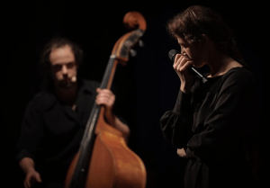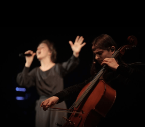 Sofiya: Soloist. I initially studied jazz singing but realized it wasn’t my path. I met Ihor (double bassist and playwright of DakhTrio) in the metro, which brought me to Dakh (Dakh Theatre in Ukraine, Kyiv). I studied traditional singing with Hanna Okhrimchuk and later explored medieval and chamber singing. I see the voice as an instrument capable of expressing anything.