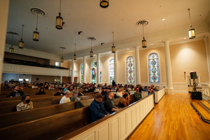 The comparison to Unsound is instructive. Krakow’s medieval center, its synagogue and salt mine and Soviet-era Forum hotel, offer an architectural palimpsest that rewards wandering. Big Ears has something similar, if less ancient: the historic First Presbyterian church, the Bijou’s gilt proscenium, St. John’s Cathedral with its towering nave, the grandeur of the Tennessee Theatre, and the surprisingly good acoustics of a rundown bus station. The difference is that in Krakow, you can take a tram. In Knoxville, you walk—or, if you’re me, you run, scarfing down pizza slices and bean burritos between sets. The logistical friction is real. I ended up at Dirty Three instead of Wild Up’s Arthur Russell set simply because I simply couldn’t manage the walk back to the Greyhound. But this friction also produces a sense of investment, of having earned the music.
