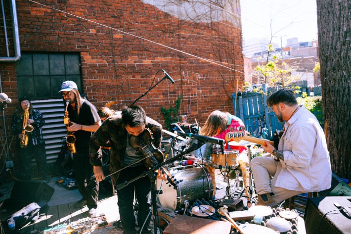 That’s multiple festivals’ worth of music right there. But FOMO, I came to realize, is also the engine of the festival. It forces you to make choices, to commit, to be present where you are rather than where you’re not. The alternative would be a festival without stakes, one that has to play it safe, cater to more specific niches and tastes. In short, not Big Ears. The Joyful Noise showcase at Pretentious Beer Company was a two-hour improvisation featuring nine musicians: Greg Saunier, Shahzad Ismaily, Wendy Eisenberg, Patrick Shiroishi, Kishi Bashi, Tall Tall Trees, Booker Stardrum, M.A Tiesenga, and others. It was the kind of thing that could only happen at a festival where musicians are encouraged to simply hang out and make noise together.